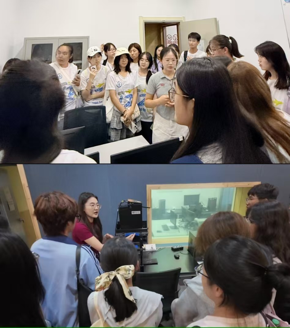 接下来,同学们来到韦德体育官网五楼的神经认知语言学实验室进行探索。在研究生赵钰茹和邢大慧的介绍下,同学们了解了语言学与神经科学、心理学的交叉研究,打破了外语是纯人文科目的刻板印象。此次参观极大地拓宽了同学们的学术视野,为未来的学术发展提供了无限可能。