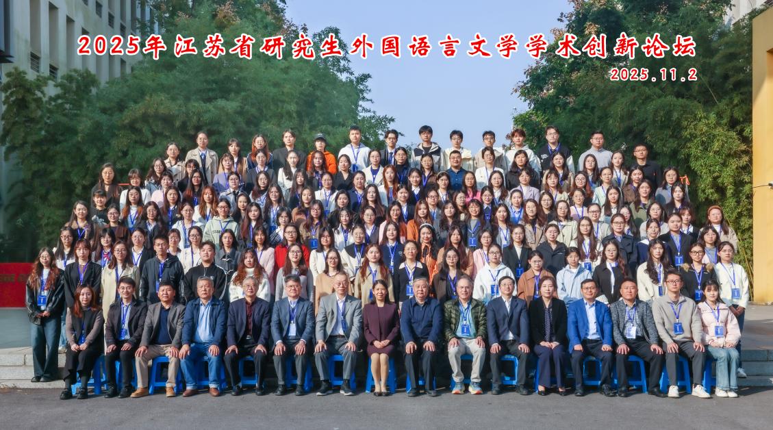 2025年11月1日至2日,由江苏省文学类研究生教育指导委员会主办、韦德体育官网与区域国别与国际传播研究院承办的“2025年江苏省研究生外国语言文学学术创新论坛”在我校顺利召开。本次论坛以“人工智能与学术前沿”为主题,吸引了来自南京大学、南开大学、东南大学等全国三十余所高校的150余位硕博士研究生参会。