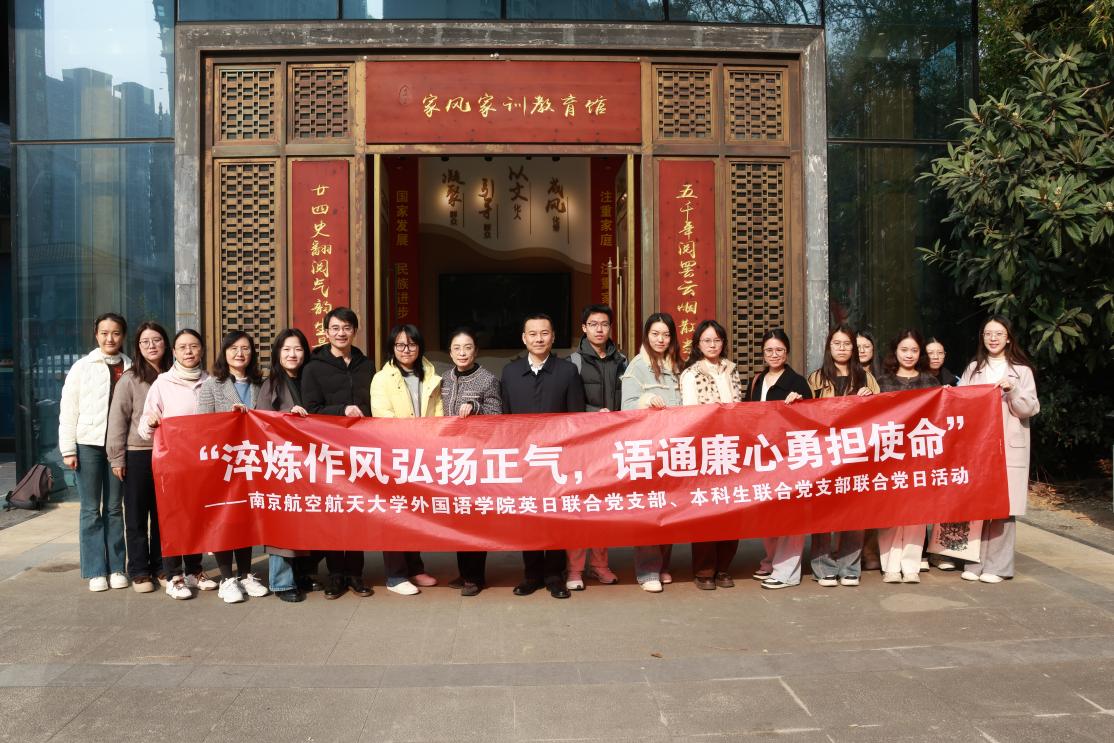 为深入学习贯彻党的二十大及二十届历次全会精神,全面落实学校第六届“清廉南航”宣传教育周工作部署,巩固拓展主题教育成果,持续深化韦德体育官网党风建设,2025年12月11日,韦德体育官网英日联合党支部、本科生联合党支部于雨花区古雄街道廉政教育基地联合举办“淬炼作风弘扬正气,语通廉心勇担使命”主题党日活动。韦德体育官网党委书记庄群华、党委副书记吴科颖、组织员杨定娟、本科生辅导员冯子格共同参与活动。