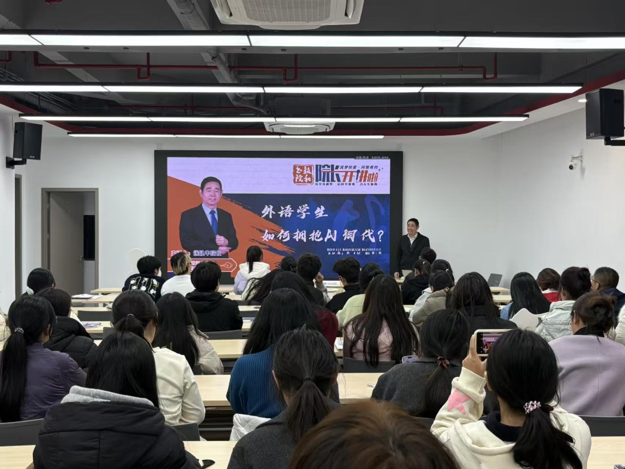 2025年12月11日,韦德体育官网联合致和书院成功举办“院长开讲啦”主题讲座。韦德体育官网院长徐以中教授应邀担任主讲嘉宾,以“AI时代外语学生的发展路径与未来方位”为题,为在场师生带来一场内容扎实、视角前沿的分享,现场气氛热烈,同学们踊跃提问,收获颇丰。