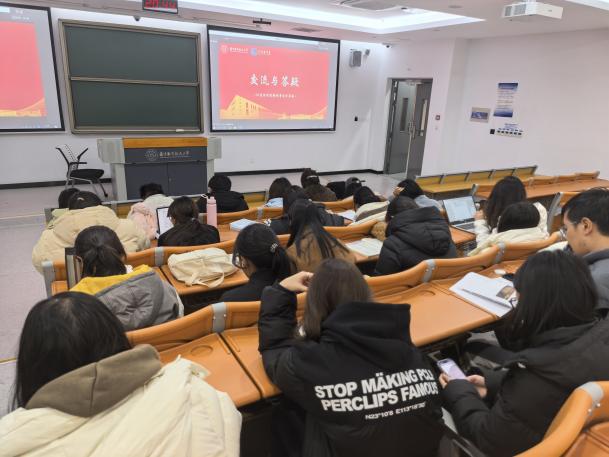 交流答疑环节,李柳铮同学结合自身经历,回答了2025级新生代表有关“怎样平衡学业、生活与科研”问题,鼓励大家多做尝试,走出舒适圈,探索自我兴趣爱好,启发颇丰。