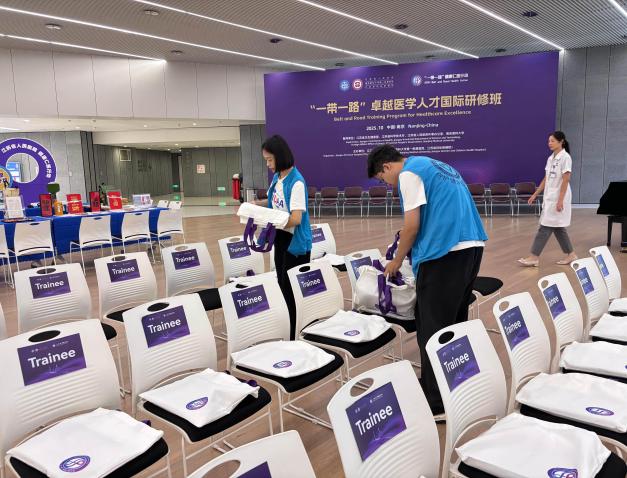 作为此次活动现场服务的重要力量,韦德体育官网本硕学生提前集结、主动参与,以专业细致的服务和热情饱满的态度,为来自非洲、拉美、南亚、中亚等21个国家的近60名医生提供场地指引、传统文化分享等现场协助,让中外嘉宾在温馨有序的氛围中开启交流之旅。