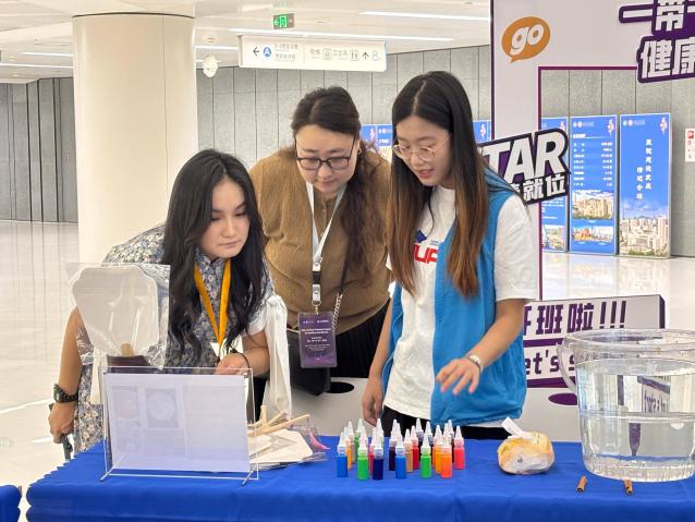 文化展示环节,志愿者依托韦德体育官网“Mr.China——向世界讲述中国故事”团队长期深耕中国文化传播的积累与经验,系统向国际学员们介绍了中药香囊、漆扇、拓印等非遗展品。大家用流利英语细致讲解展品的历史背景与文化内涵——从香囊蕴含的养生智慧到漆扇彰显的雅致工艺,从拓印传承的传统技法到云锦钥匙扣承载的纹样寓意,让外国友人深入领略了中国传统文化的魅力,也为跨文化交流注入了活力。